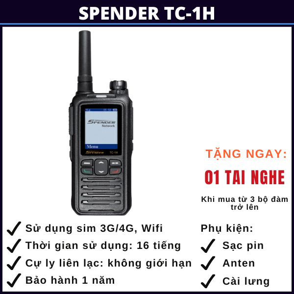 BỘ ĐÀM 3G/4G SPENDER TC-1H GỒM: