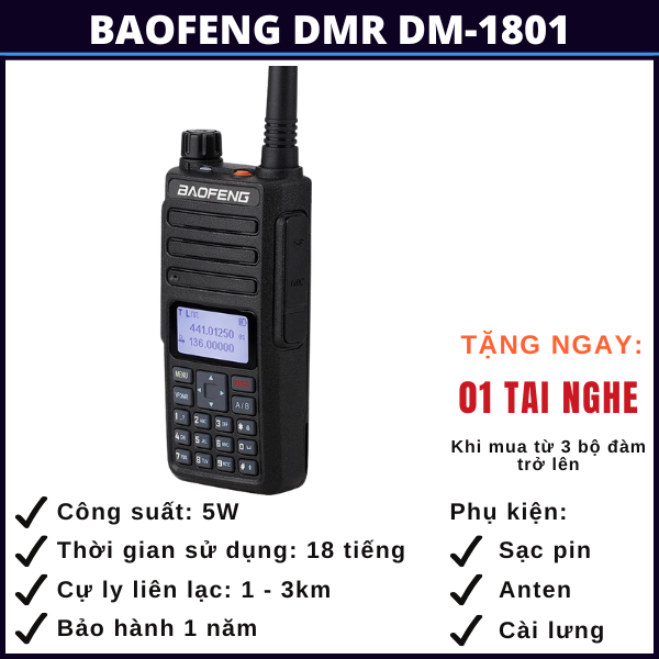 BỘ ĐÀM BAOFENG DMR DM-1801 GỒM: