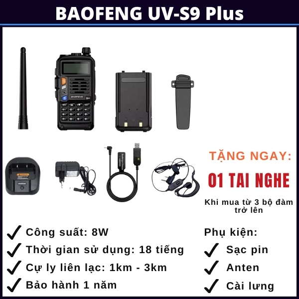 BỘ ĐÀM BAOFENG UV-S9 Plus GỒM:
