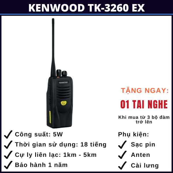 BỘ ĐÀM KENWOOD TK-3260 EX GỒM: